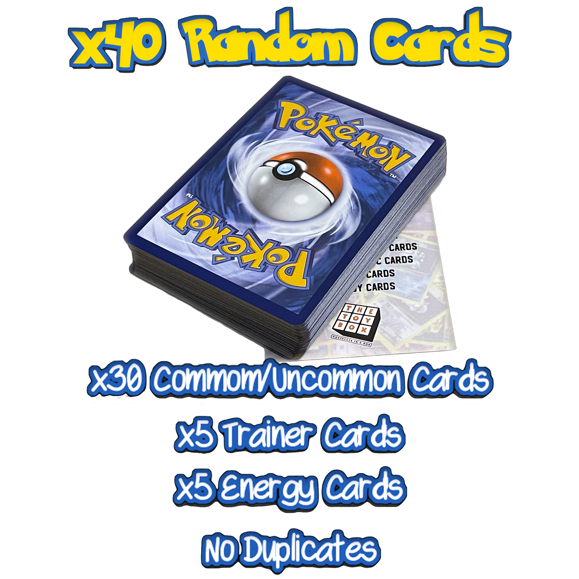 Embark on a Pokémon adventure with The Toy Box's exclusive Ultimate Shiny set: 50 Random Pokémon Cards + an Ultra Rare. Unwrap the excitement of diverse Pokémon, including captivating Holos and rare gems. Rest assured, no duplicates, and all cards are in English. Elevate your collection with this carefully curated assortment. Ideal for enthusiasts, collectors, and Pokémon lovers of all ages. Start your journey with The Toy Box today!